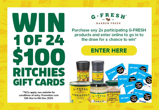 Purchase any 2X participating G-Fresh products and enter online to go in to the draw for a chance to win