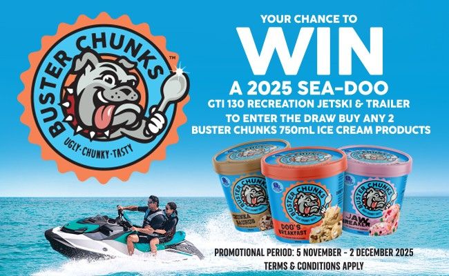 Win a 2025 Sea-Doo Jetski Worth $25,000 When You Buy Any 2 Buster Chunks 750mL Ice Creams!