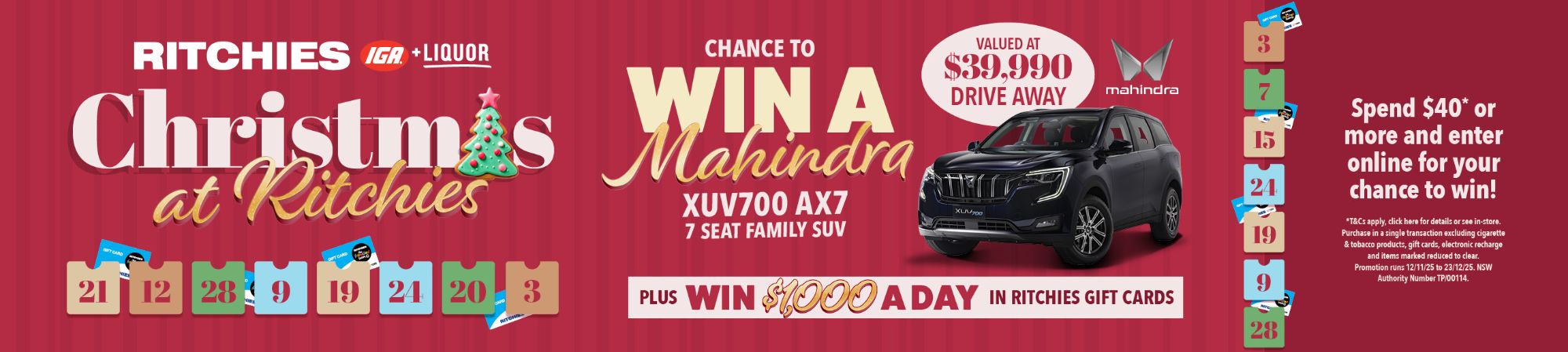 Win a Mahindra XUV700 AX7 7-Seater + $1,000 a Day in Ritchies Gift Cards!